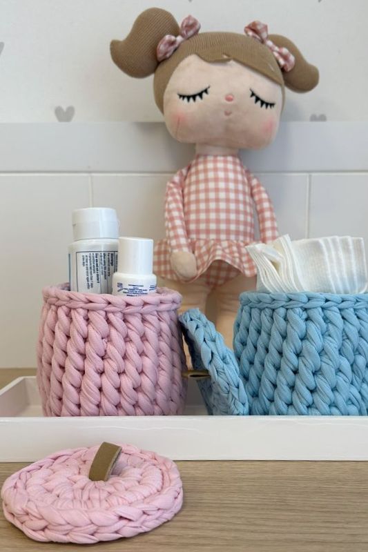 Faça 1 peça na cor 3526 (Rosa Candy) e 1 na cor 2012 (Azul Candy).