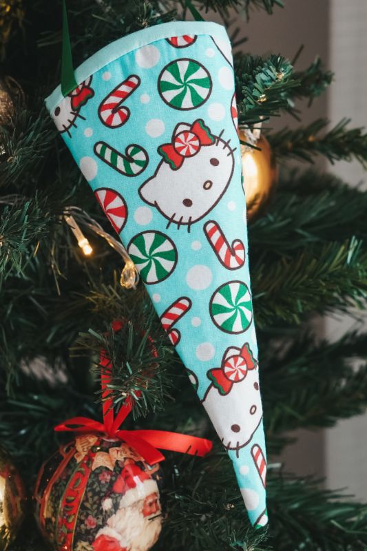 - Tecido de Natal Hello Kitty Círculo – 1 retângulo de 25 cm x 28 cm (estampas sortidas)