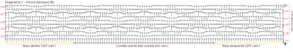 Amostra: Um quadrado de 10 cm no p. fantasia (B – diag. 2). na ag. de 3,5 mm = 18 pts. x 9 carr..