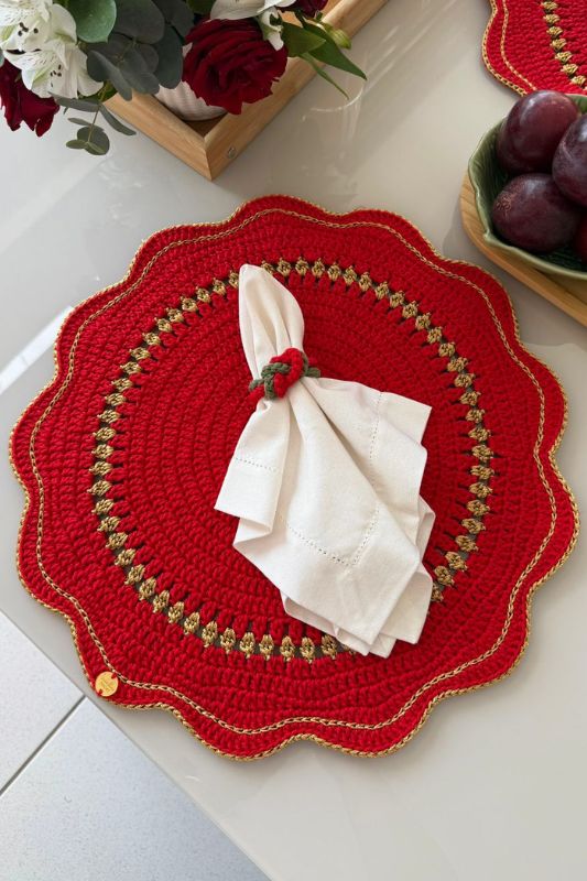 Receita Sousplat e Porta-Guardanapo Aurora de Crochê com o Barbante Barroco Maxcolor