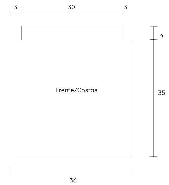 Costas – Mesmo trabalho da frente, porém trabalhe o gráfico espelhado, para costurar avesso com avesso.