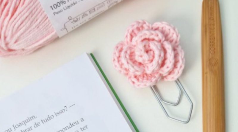 Receitas de Crochê 01/02/2026 Bazar Horizonte Receita Rosa de Crochê com Clipe com o Fio Natural Algodón 6 Cabos